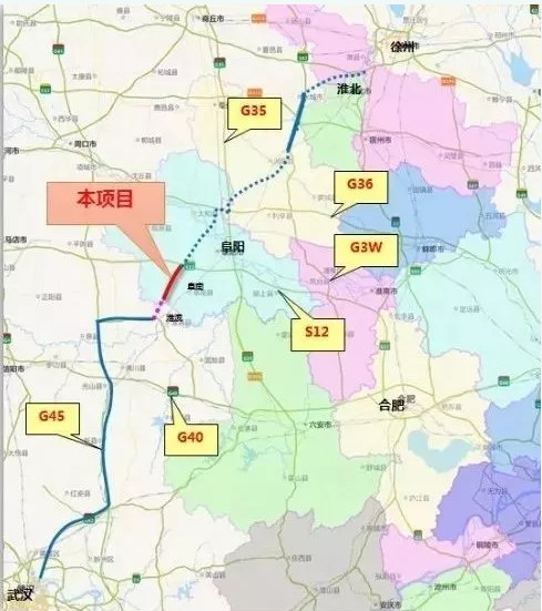 阜淮高速是我省“五纵九横”高速公路网规划中“纵二”(徐州-福州高速)联络线(徐州-阜阳高速)的组成部分,全线位于阜阳市境内,路线全长约35公里,采用双向4车道高速公路标准,路基宽26米。其中颍州区境内长约5公里,阜南县境内长约30公里。