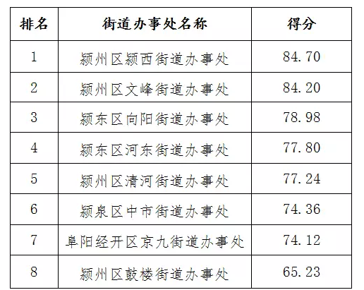 阜阳街道办事处文明排行榜发布啦!赶紧看看你家排第几!