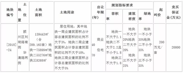 (5)依据颍州区政府函,竞买人竞得土地后,须按政府批准的规划在刘锜路北侧、源溪路西侧建设一所总建筑面积不少于25000平方米24个班级的初级中学,学校建成后无偿移交给颍州区政府。竞买人须在报名时提供与颍州区政府签订的初级中学建设协议。