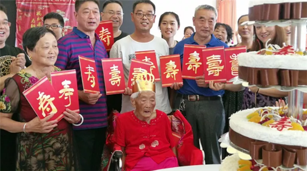 芬芳的生日花篮、满桌的桃李瓜果、香甜的生日蛋糕、亲人们脸上掩饰不住的洋洋喜气,汇成了温馨喜庆的暖流。8月11日一大早,太和县城关镇吴营社区后徐庄陈秀荣老人的子孙们都从四面八方赶回家中,齐聚在她身边,一